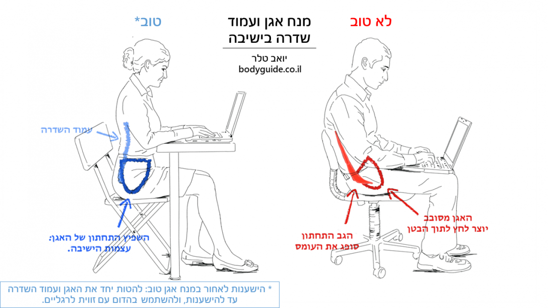 אחד הדברים הכי פשוטים לעשות כדי למנוע כאבי גב תחתון אצל אנשים שיושבים הרבה: שימוש נכון באגן ובעצמות הישיבה.